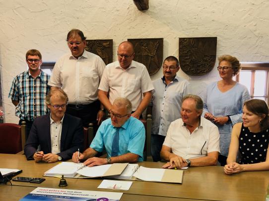 Am Freitag, 03. August, wurde der Betreibervertrag mit dem aus Lauf an der Pegnitz stammendem Unternehmen unterzeichnet. Damit hat der Markt Heiligenstadt i. OFr. das Tor zum Gigabit-Zeitalter aufgestoßen. Der 1. Bürgermeister, Helmut Krämer, verwies stolz darauf, dass dies für die Marktgemeinde „das wichtigste Projekt der vergangenen 15 Jahre“ sei. Auch Johannes Bisping freute sich auf eine gute Zusammenarbeit.