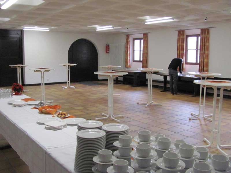 Getränke oder Speisen sind von der gemeindlichen Gastronomie zu beziehen.